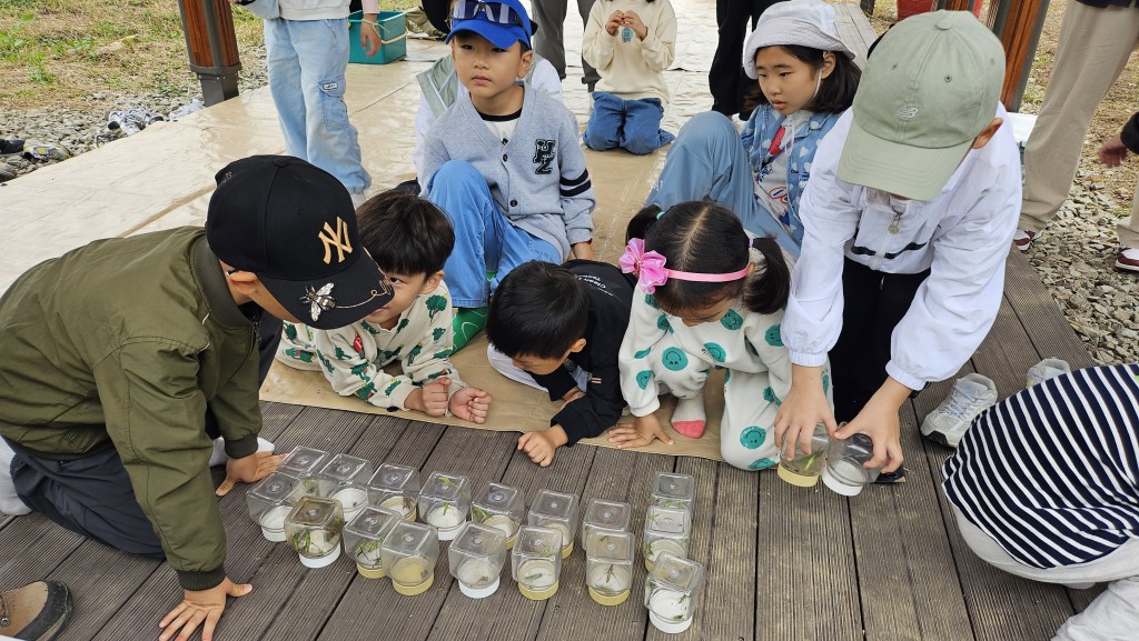개미 선생님 소개로 시작된 체험은 둠벙에 통발을 던져놓으며 시작되었어요...둥벙에 많은 물고기가 산다는 선생님 말에 마음에 드는 먹이를 골라 통발에 넣고 기대감에 부푼 눈빛으로 둠벙에 던지러 가는 아들 얼굴이 잊혀지지가 않네요...결과는 ...엄청난 참붕어가 잡혔답니다.