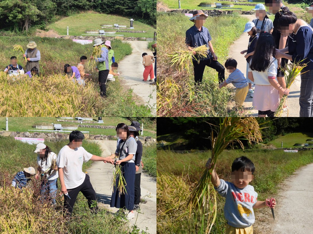 지난 5-6월 체험객들이 직접 심었던 모는 자연의 힘으로 무럭무럭 자라 벼가 되어 노랗게 고개를 숙였어요.